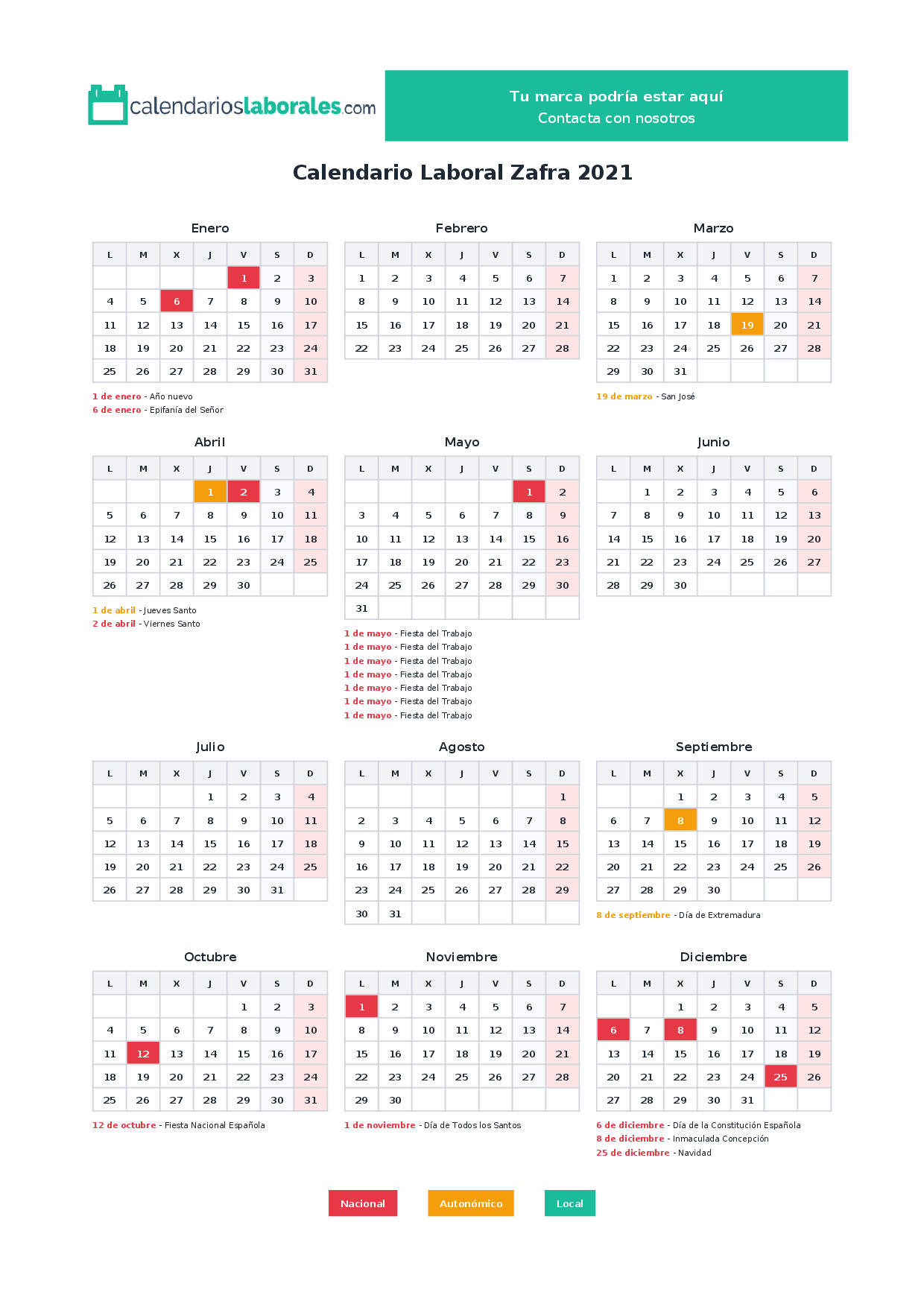 Calendario laboral Zafra 2021