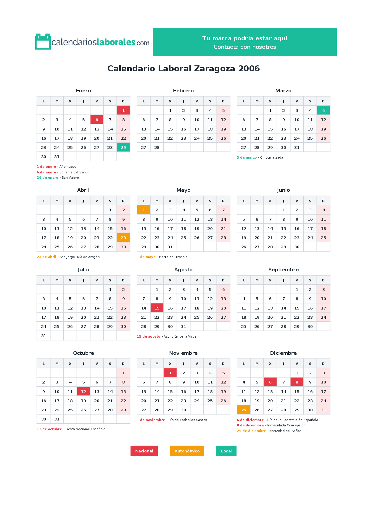 Calendario laboral Zaragoza 2006